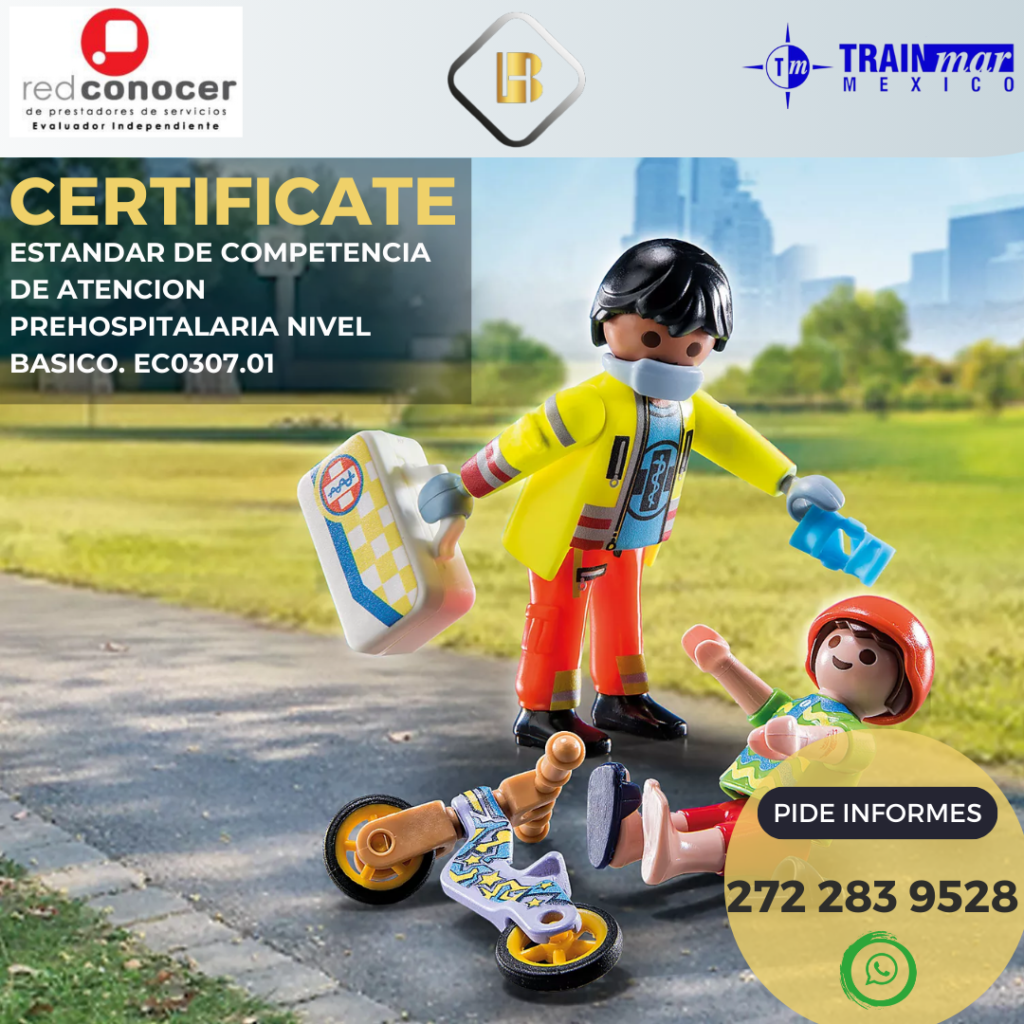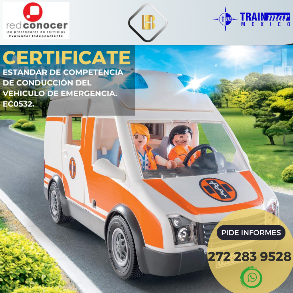 La certificación de competencias es el proceso a través del cual las personas demuestran por medio de evidencias, que cuentan con los conocimientos, habilidades y destrezas necesarias para cumplir una función a un alto nivel de desempeño de acuerdo con lo definido en un Estándar de Competencia, sin importar como los hayan adquirido. Estándar de competencia de Operación del vehículo de emergencia (EC0532).“Estándar de Competencia dirigido a personas que deban contar con conocimientos, habilidades, destrezas y actitudes para desempeñarse como operadores de vehículos de emergencia. El Estándar de Competencia incluye la revisión exterior e interior del vehículo de emergencia, la conducción del mismo. También establece los conocimientos teóricos, básicos y prácticos con los que debe contar la persona encargada de esta función, así como las actitudes relevantes en su desempeño. “ Descarga el estándar de competencia aquí.Lugar: Orizaba, Veracruz (a convenir en caso de grupos).Pide tu cotización desde el formulario de contacto o dando clic al botón de WhatsApp.¿Quieres saber si estas listo para tu evaluación o si necesitas una alineación o capacitación previa? realiza tu Evaluación diagnostica gratuita. CLICK EN EL BOTON NARANJA Haz clic aquí para ir a tu evaluación Estándar de competencia de Atención Prehospitalaria Nivel Básico (EC0307.01).Estándar de Competencia dirigido a personas que deban contar con conocimientos, habilidades, destrezas y actitudes para personas que brindan atención prehospitalaria nivel básico, cuando verifica el equipo médico, insumos, soluciones, medicamentos y recursos físicos en la ambulancia para brindar la atención prehospitalaria, determina acciones/medidas y materiales necesarios de acuerdo a la urgencia/emergencia notificada, evalúa al paciente de acuerdo a la naturaleza de la urgencia/emergencia, realiza las intervenciones/destrezas específicas, evalúa y atender al paciente durante el traslado hasta la entrega al hospital receptor y cierra las operaciones de la atención prehospitalaria.Descarga aquí el estándar de competencia.Lugar: Orizaba, Veracruz (a convenir en caso de grupos).Pide tu cotización desde el formulario de contacto o dando clic al botón de WhatsApp.¿Quieres saber si estas listo para tu evaluación o si necesitas una alineación o capacitación previa? realiza tu Evaluación diagnostica gratuita. CLICK EN EL BOTON NARANJA Haz clic aquí para ir a tu evaluación Facilidades a grupos. Contáctanos para detallar costo, ubicación cercana a ustedes y alineación al estándar. Síguenos en Facebook para no perderte los cursos de alineación al estándar y evaluaciones abiertas periódicas. Whatsapp Facebook
